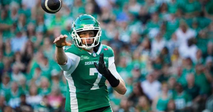 The win improved Saskatchewan’s record to 6-1, one win ahead of the Calgary Stampeders, who fell to 5-2 with a 23-21 loss to the Montreal Alouettes on Thursday. The Elks, coming off a bye week, dropped to 1-5 and sit last in the West.