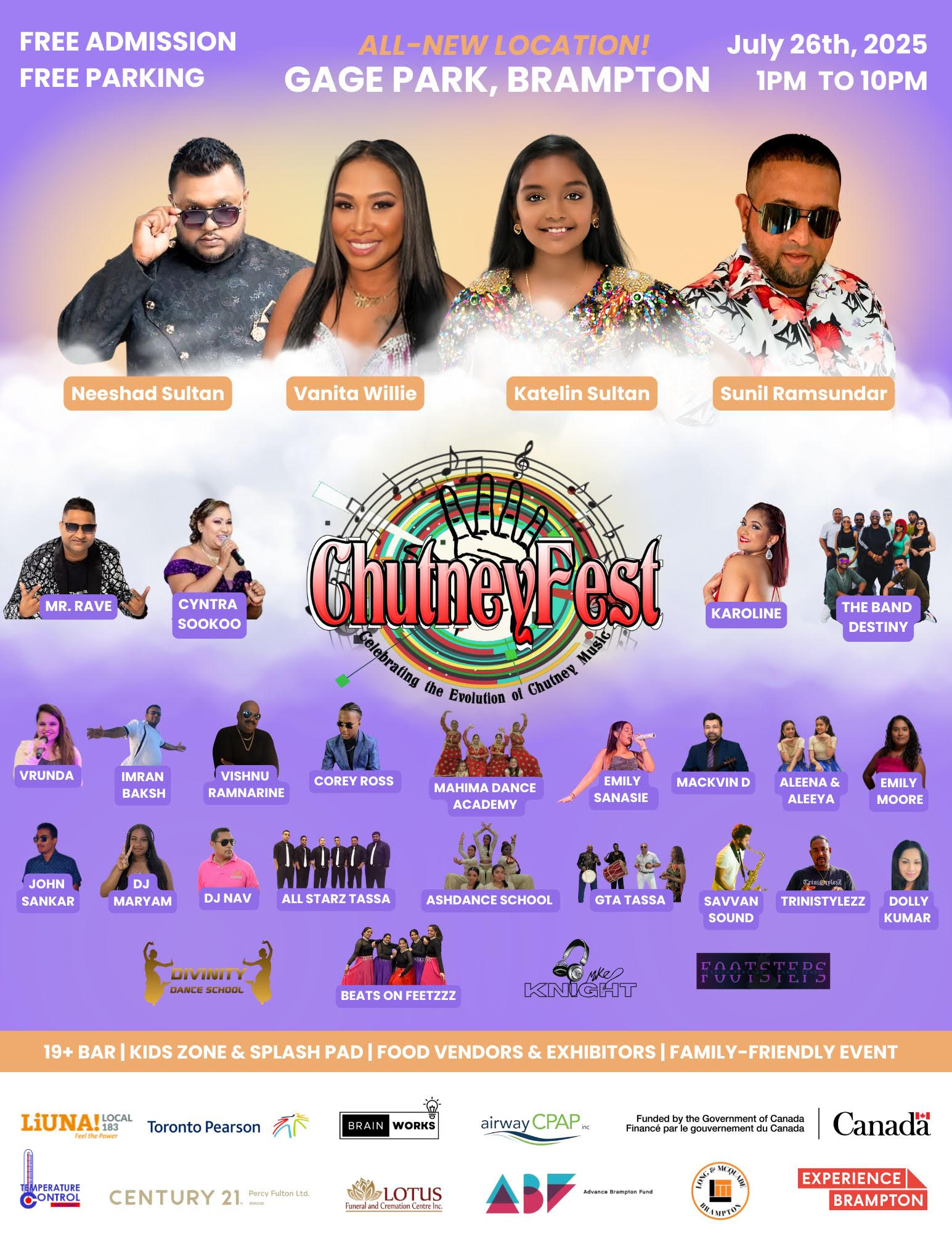 ChutneyFest, now entering its 12th year, is Canada’s fastest growing celebration of Indo-Caribbean culture and heritage. It has been the City of Brampton’s Marquee event for seven years running and is becoming a growing annual attraction for tourists from across North America, the Caribbean, Europe and Asia. This event takes place on Saturday, July 26th at Gage Park in Brampton Ontario at 1PM. You’ll get to enjoy great music, amazing food, a variety of vendors & exhibitors and all just all around – great vibes.