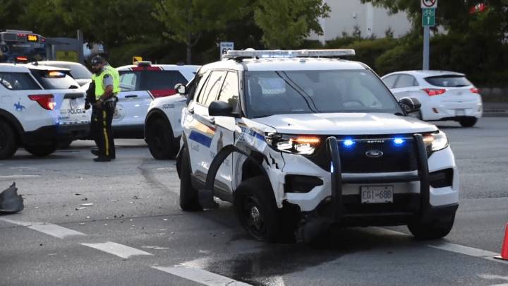 Surrey RCMP cruiser struck by SUV while officer responding to callSurrey police said an RCMP officer was responding to an emergency call when an SUV struck them at 8:22 p.m. in the intersection of 176 Street and 64 Avenue.TrafficJul 21