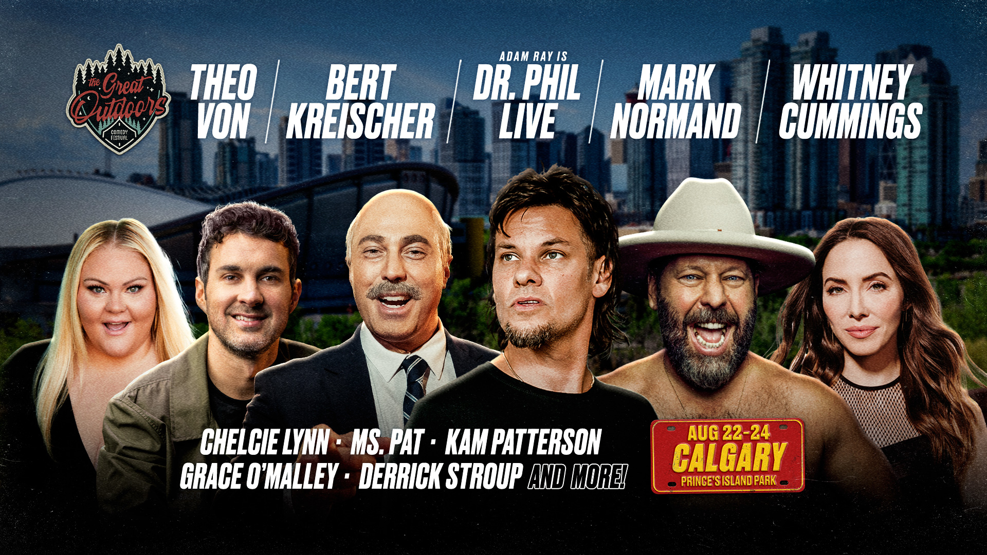 The Great Outdoors Comedy Festival is coming to Calgary this summer, where outdoor explorations transition to urban adventures. Heading into the fourth summer in the wild west, GOCF takes over Prince’s Island Park nestled north of downtown on the Bow River. Get your tickets for this years’ hilarious headliners including Theo Von, Bert Kreischer, Adam Ray is Dr. Phil Live, Mark Normand, Whitney Cummings and many more!